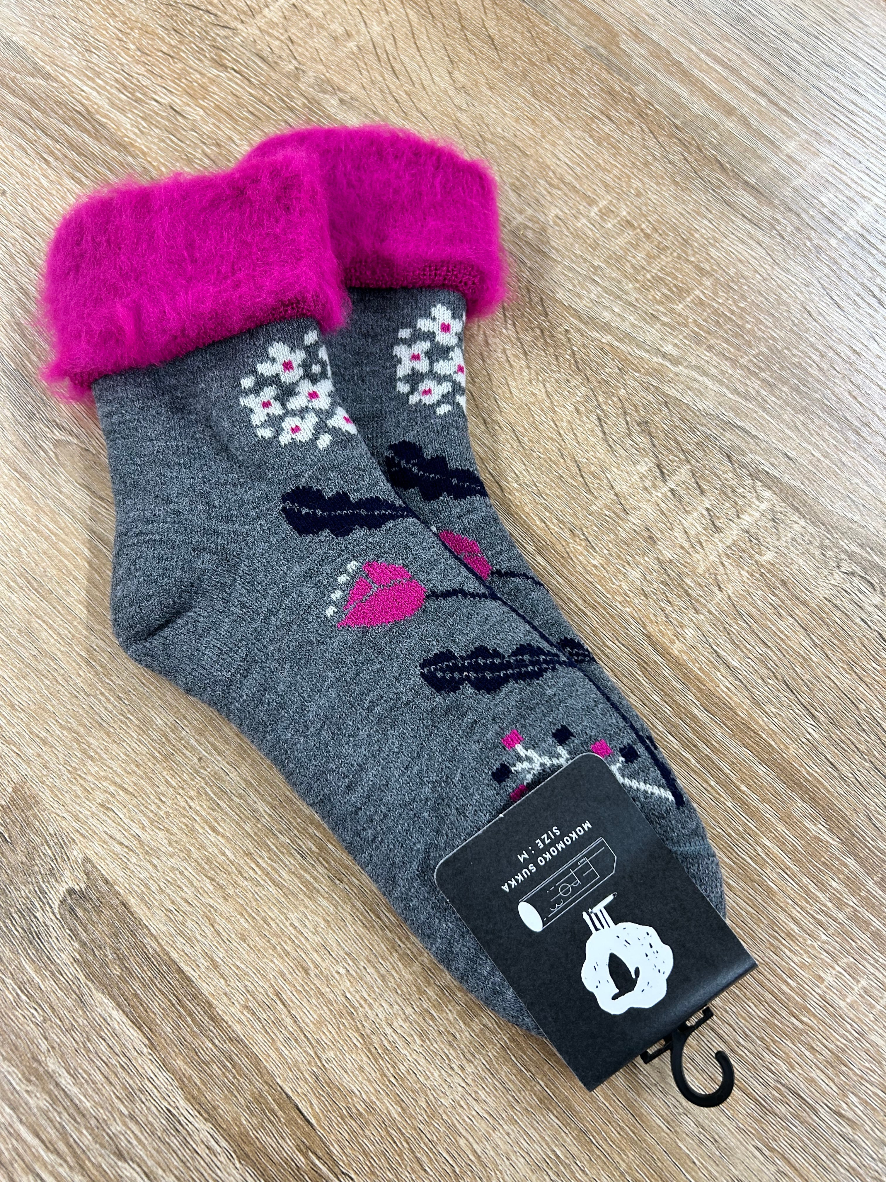 定番の暖かいもこもこソックスです。